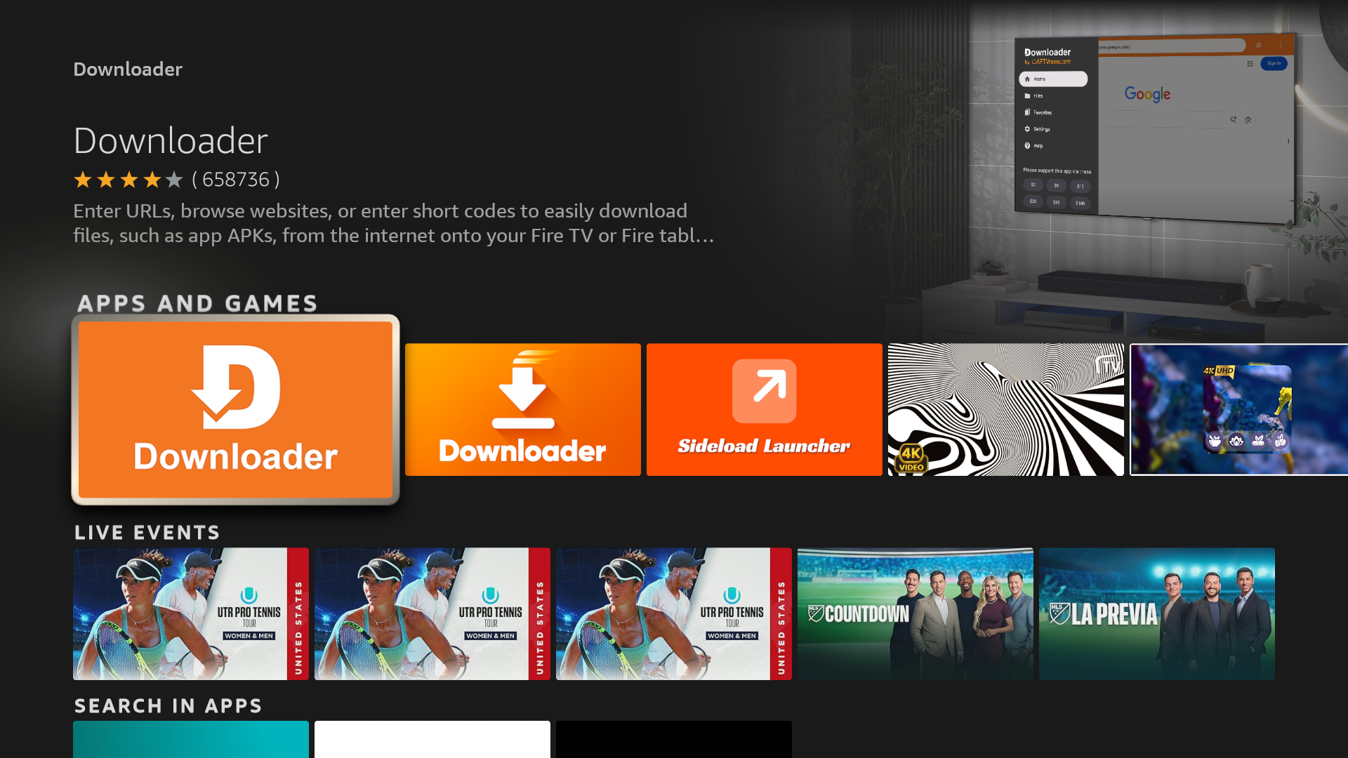 I’ve separated the sideloading steps and the Telemac Player installation into three parts to make it easier to follow along. First, we’ll need to get the Downloader app on the FireStick. Then, we’ll make necessary changes in our Fire TV settings. Finally, we’ll be able to download Telemac IPTV Player APK with Downloader.