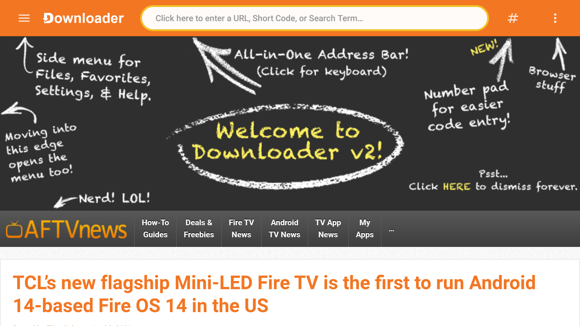 5. Start to type Downloader. Select Downloader when it shows up among the suggestions below the keyboard.