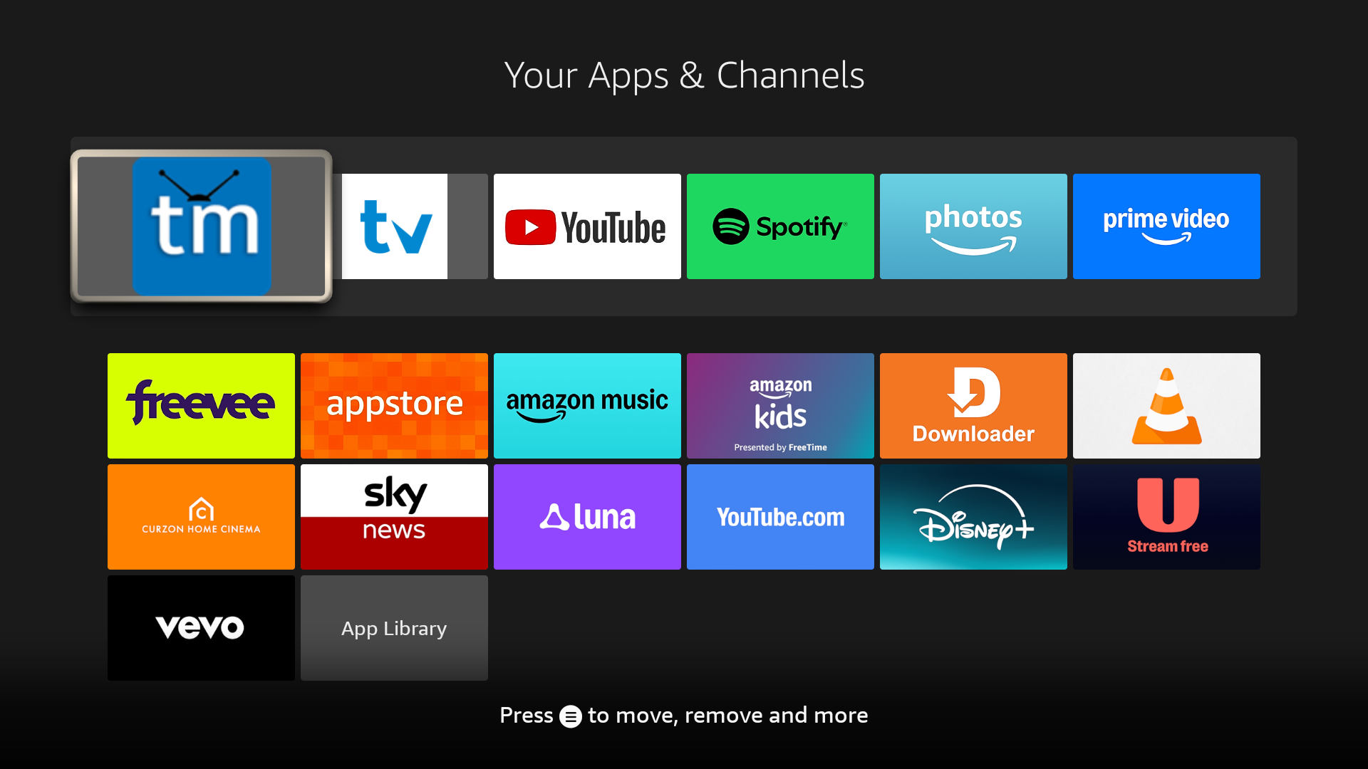 Once you have opened the Your Apps & Channels page click on the ” tm” icon and open the Telemac Player app.